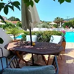 Außerdem gibt es eine Terrasse mit einem Swimmingpool für die Gäste.
